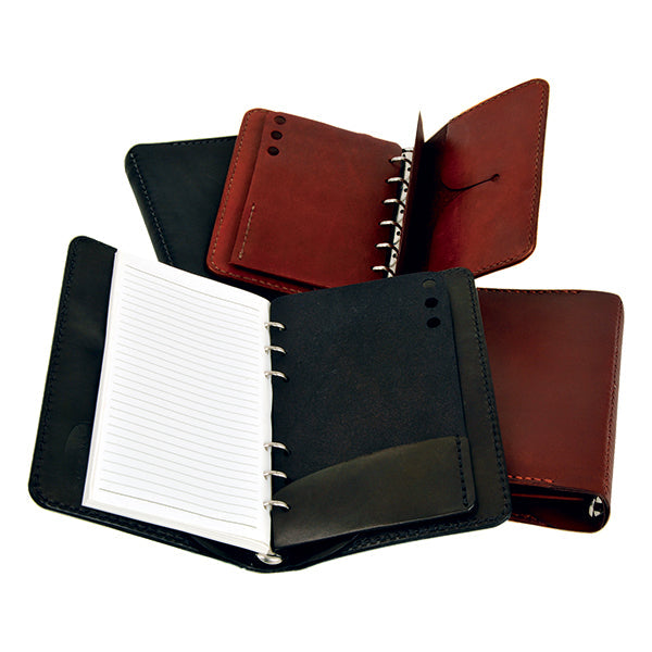 遊牧舎工房 システム手帳はビジネスマンや学生必携のシステム手帳です。名刺入れ、ペンクリップ、ポケットが付き、閉じ金具の部分は二重に補強してあります。一針一針職人の手によって丹念に作られる革製品は使うほどに味わいが出ます。