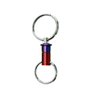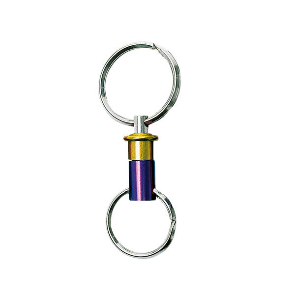 美しいアルマイトカラー仕上げで、色分けで鍵別に使用すれば、一目瞭然です。また、NASAの宇宙開発技術によってつくられたもので、200kgもの引張りにも耐えられます。突起を軽く押して引き抜くとリングが別々に外れるのでエンジンキーとトランクキー、ガレージキーと玄関キーのように2種類のキーをまとめて持ち歩け、必要に応じて別々に機能させることが出来ます。また、別売りのキーバックなどに車のキーを付けておくときも簡単に外すことができ大変便利です。