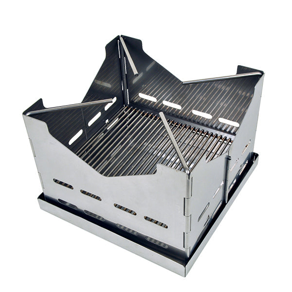 A&F エイアンドエフ ファイヤースタンドは厚さわずか3cmの箱型ベースプレートに折りたたむことが出来る、錆びにくい1.2mm厚のステンレススチールで作られている焚火台です。