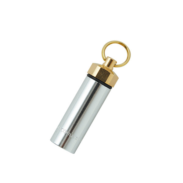 忘れがちの常備薬や大切な小物入れにも使用できます。キャップは真鍮製で経年変化が楽しめます。本体はアルミ製で11gと軽量。また常備薬ケースとして使用する際に気になる内径は1.1cmです。