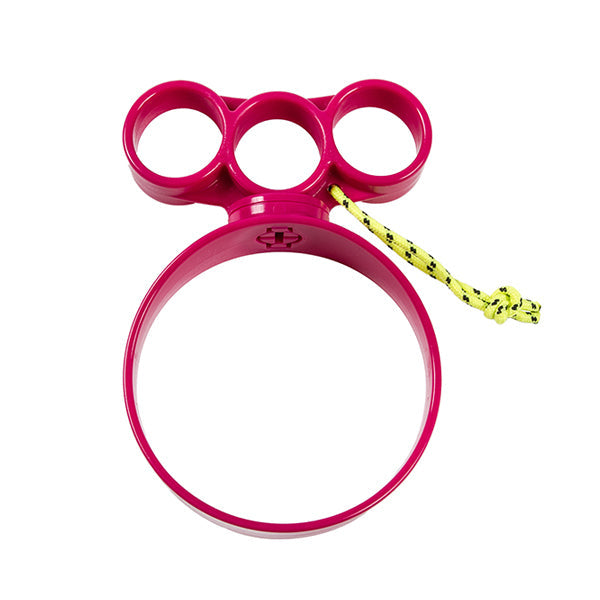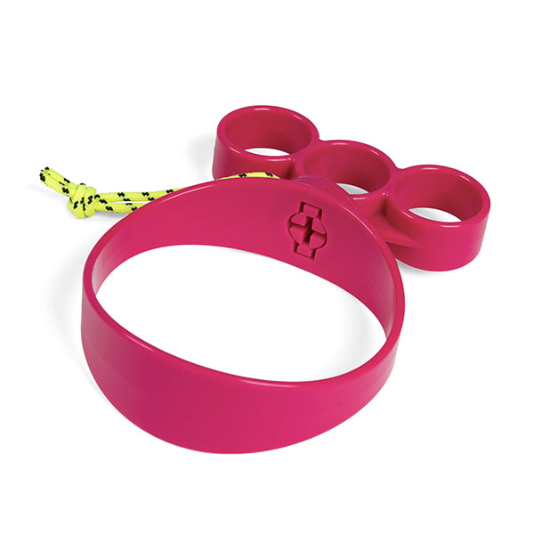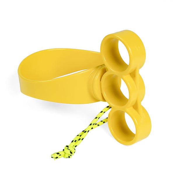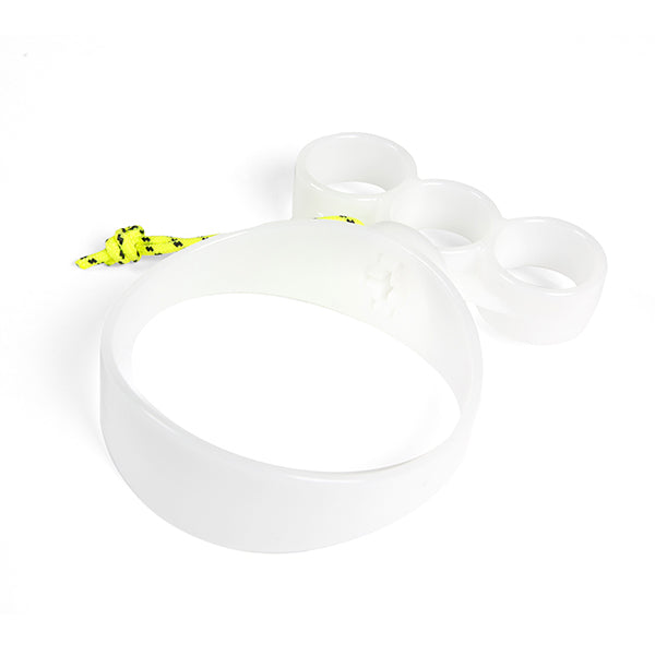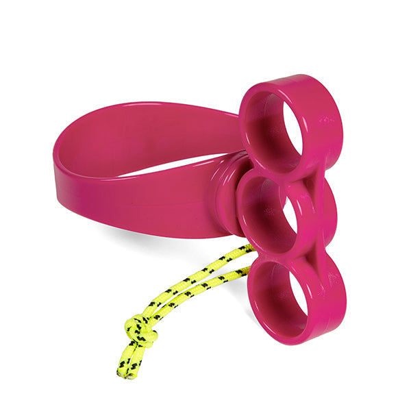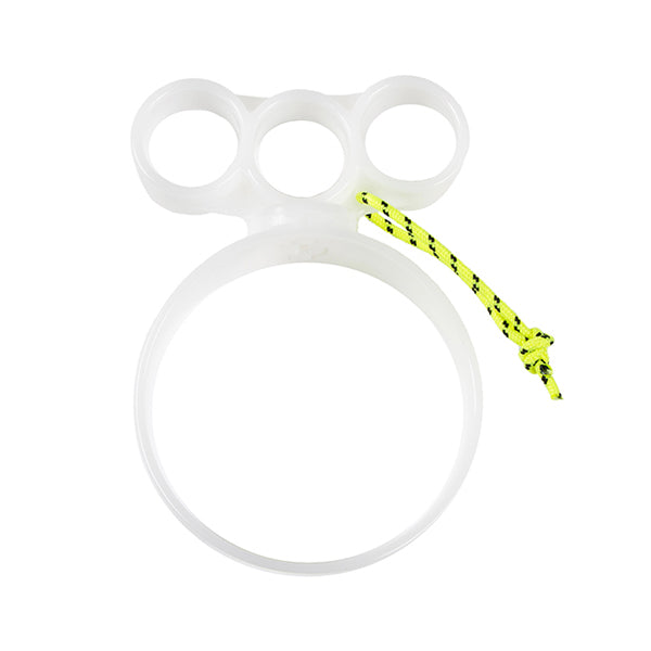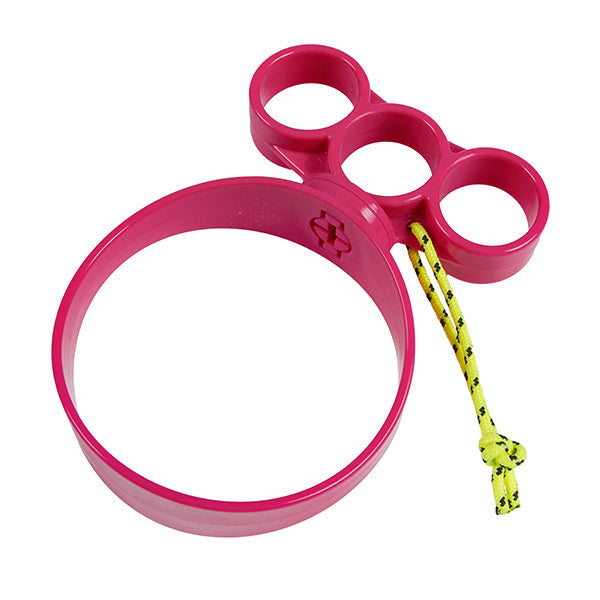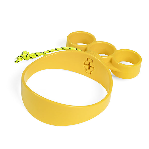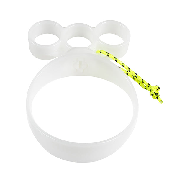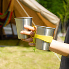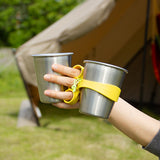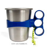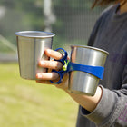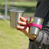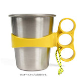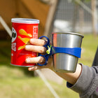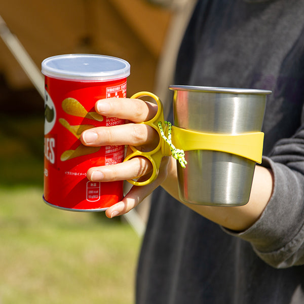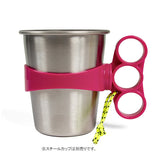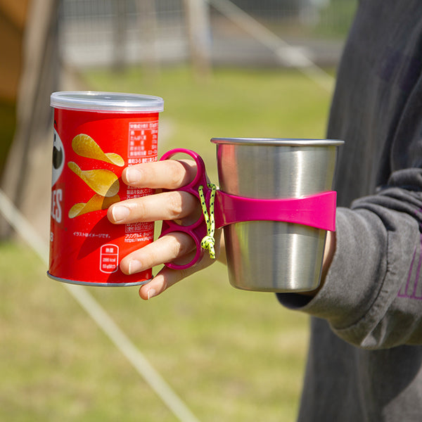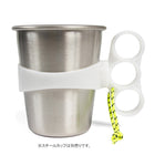 指を通す部分は360度回転するので、指を通す部分とカップホルダー部分を並行になるように回転させれば、かさばらずに持ち運びができます。また、ループに紐が付いているのでカラビナ等でぶら下げておくこともできます。