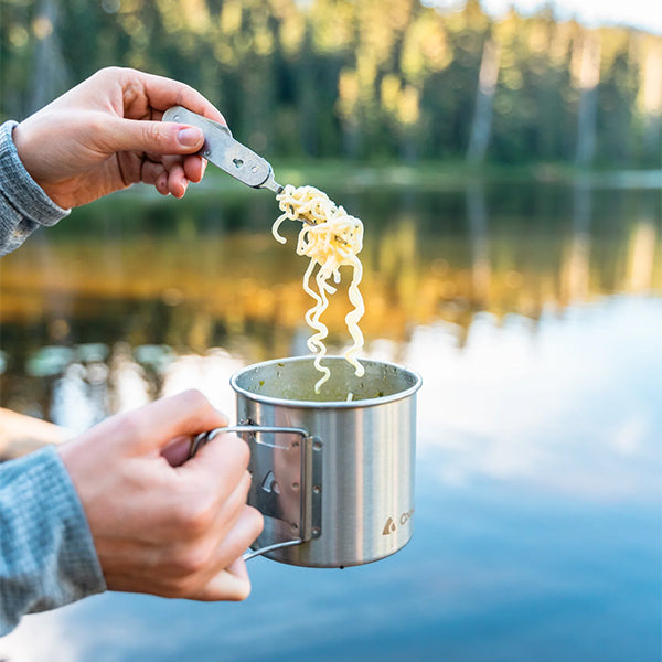 荷物のスペースを節約し、休憩や食事の際に便利です。このコンパクトなキットには、ステンレス製のフォーク、スプーン、ナイフ、栓抜きが入っている。日帰りハイキングやバックパッキング、旅行時の携帯に最適なパーソナルツールです。