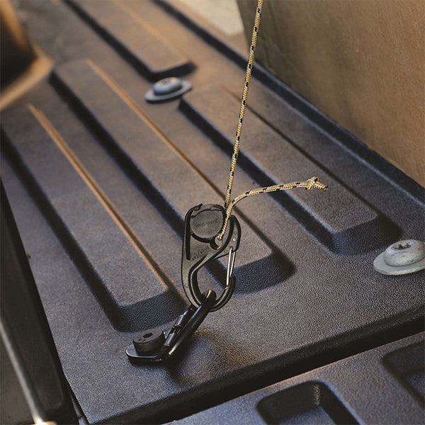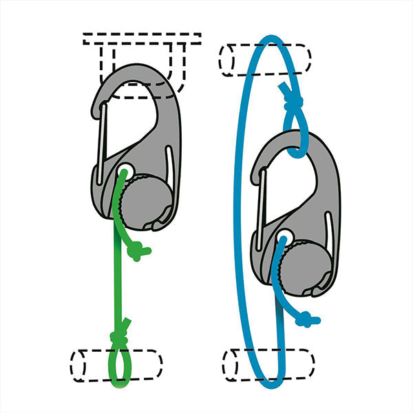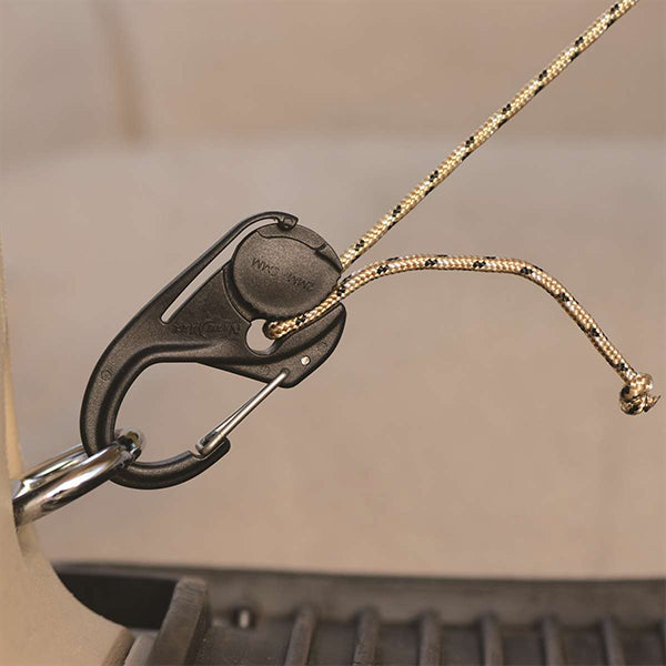 荷物を固定したい時、タープを張るときなど、様々なシーンに使えて便利です。わざわざ難しいロープワークを憶えなくても、誰でも簡単にお使いいただけます。