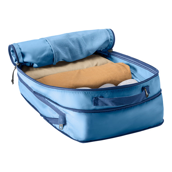 旅先で荷物が増えてしまった際は圧縮ジッパーを開けるだけで拡張ができ、さらに荷物を詰め込むスペースを作ることができます。片側はメッシュになっているので、収納したものを素早く見つけることができます。旅行や出張、キャンプ、アウトドアシーンなどのさまざまなパッキングに便利です。100%リサイクル素材を使用し環境にも配慮しています。