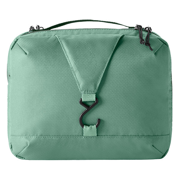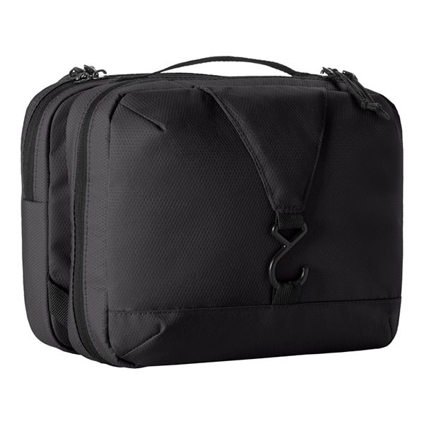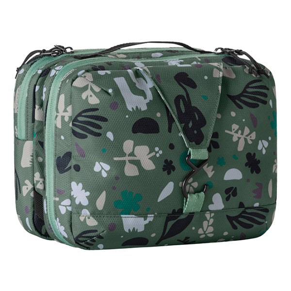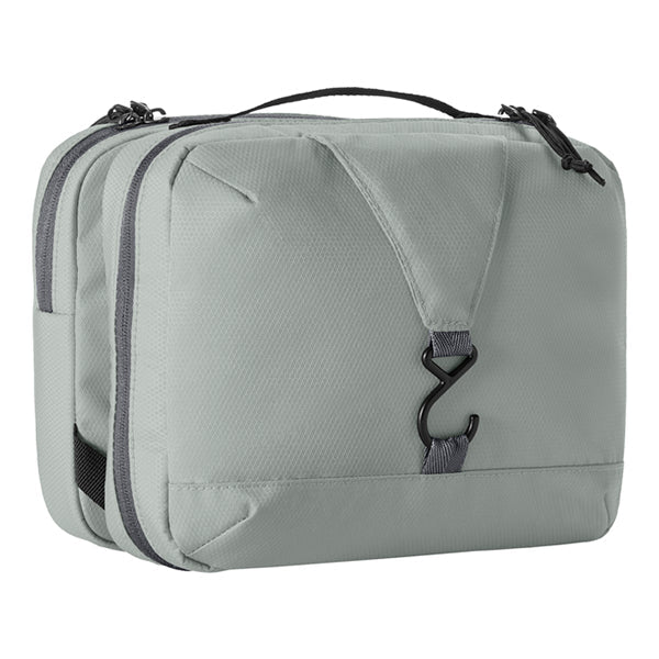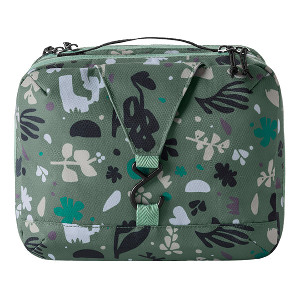 3つのコンパートメントがあり、整理整頓して収納することができます。フックが付いているので吊るして使うことができ、全体を広げて吊るすことで、中身が一目で見渡せ、必要なアイテムをすばやく取り出すことができます。伸縮性のあるジッパー付きポケットは小さな容器を所定の位置にとどめ、内部のパッドは壊れやすいボトルを保護します。さらに、環境に配慮された100%リサイクル生地が使用されており、耐水性があるため不意の水しぶきからも中身を守ります。旅行や出張、キャンプ、アウトドアなど、さまざまなシーンで便利に活用できます。