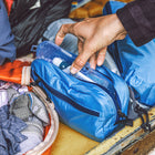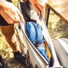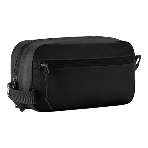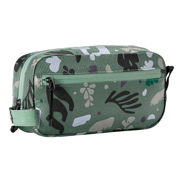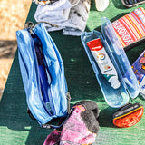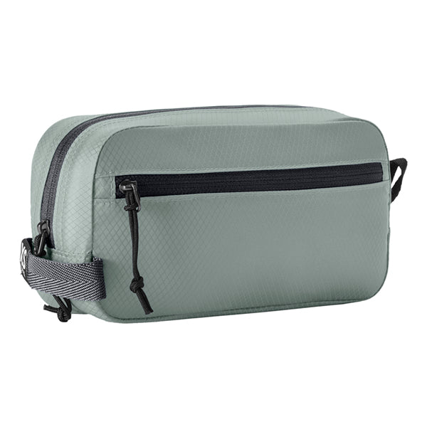 メインコンパートメントに加え、前面と背面にジッパーポケットがあります。メインコンパートメントのジッパーは大きく開閉ができるので中身を簡単に取り出すことができ、外側のジッパーポケットには小さなアイテムを分けて入れることができます。コンパクトなサイズでも多くの物の収納に優れ、洗面用具や錠剤、ペンなどを効率よく収納ができます。旅行や出張、キャンプ、アウトドアなど、さまざまなシーンで便利に活用でき、耐水性がある100%海洋リサイクル生地を使用し環境にも配慮しています。