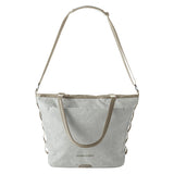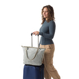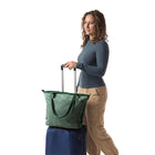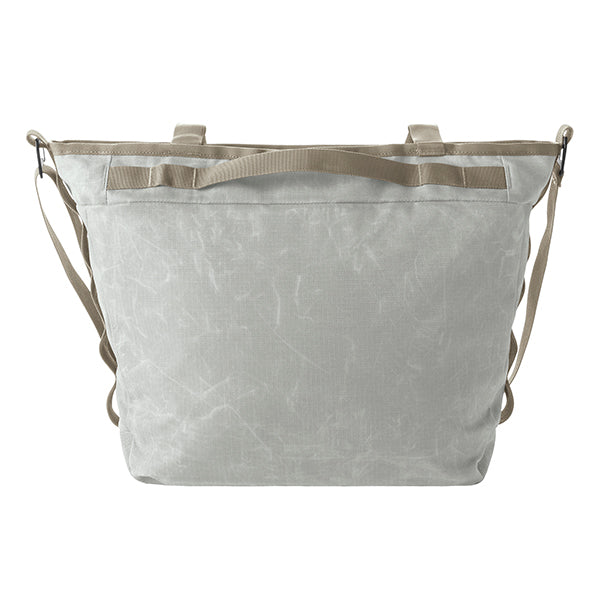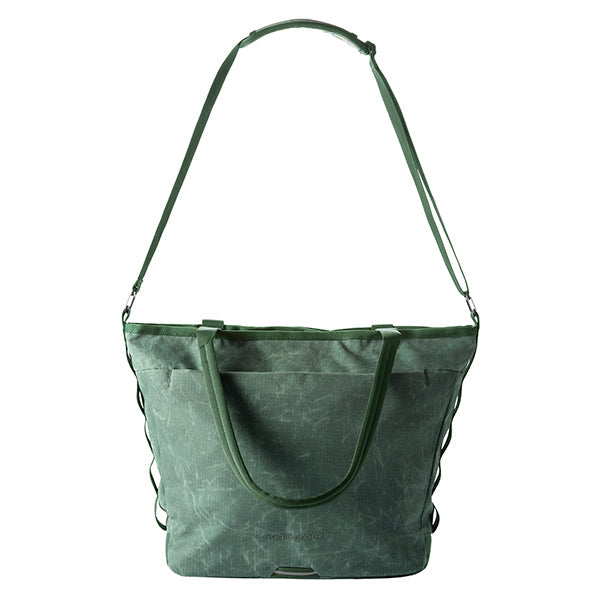 生地はワックス加工を施したリップストップナイロン100%で、サステイナビリティを最優先しながら、耐久性とスタイルを両立しています。キャリーバッグのハンドルに取り付け可能なトロリースリーブを使えば、お気に入りのラゲッジとこのトートを簡単に一緒に持ち運びできます。毎日の通勤から冒険まで、あらゆるシーンで活躍する万能バッグです。