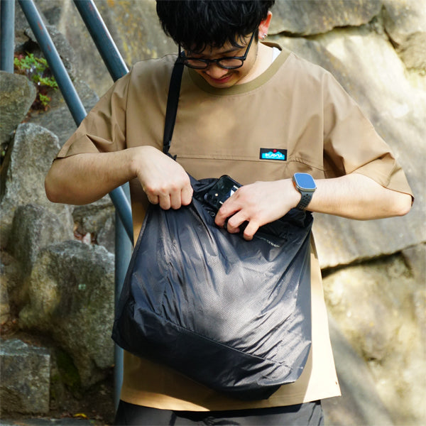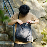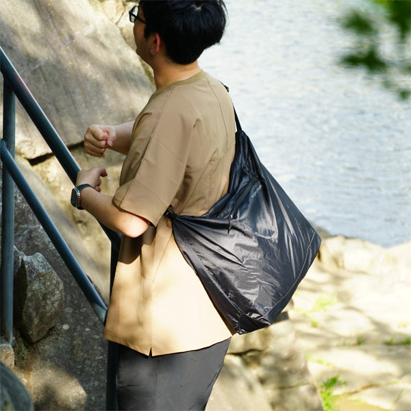 折りたたむと手のひらサイズになるこの超軽量ショルダートートは、どこへ行くにも誰にとっても外出時の心強い相棒です。小さく畳んでバッグや車の中にいれておけば、外出先や旅行で荷物やお土産が増えたときに大活躍してくれます。