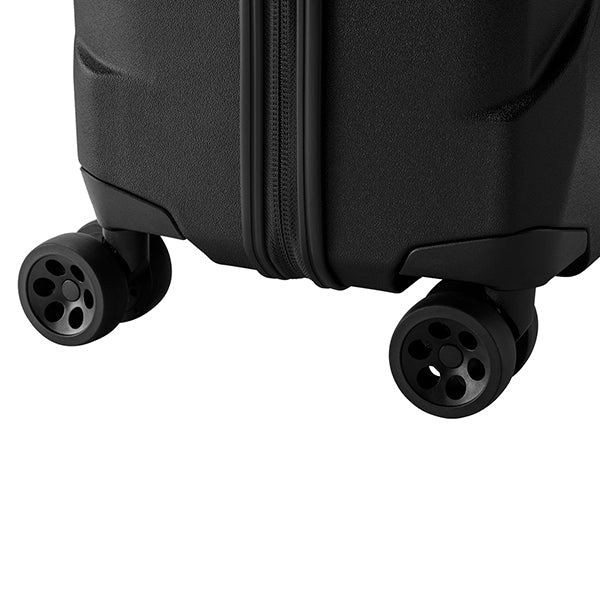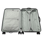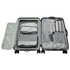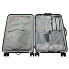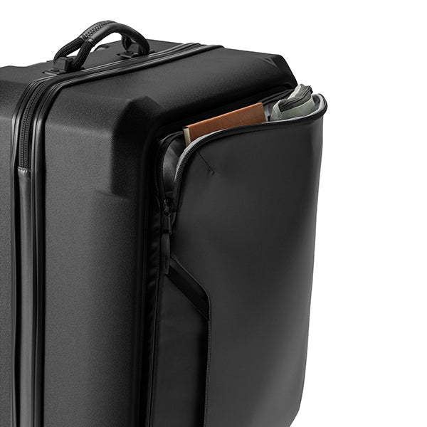 シリーズの中で最も大きい容量の95Lで、家族旅行や10泊以上の長期の旅行、出張にもピッタリ。ハードケースとソフトケースの両方の長所を活かした設計が特徴のハイブリットキャリーバッグで、ポリカーボネート製のハード素材部分が外部からの衝撃から中身をしっかり守り、長期の旅行や海外旅行にも安心して使えます。フロント面のソフト素材部分は、外側からすぐにアクセスできるポケットがデザインされ、必要なものを必要な時に取り出せます。頑丈な4輪キャスターはどの方向にもスムーズに動くので、混雑した場所でもストレスなく、より快適に荷物を運べます。フラットな地面や床で立てたまま楽に押したり引いたりでき、荷物が重くなった場合も移動がスムーズです。さらに、内側には調節可能なコンプレッションベルトが付いており、荷物のかさばりを押さえてしっかり固定。メッシュ素材のポケットが付いた仕切りもあるので、バッグの中でごちゃごちゃするのを防ぎ、整理整頓しやすい設計です。