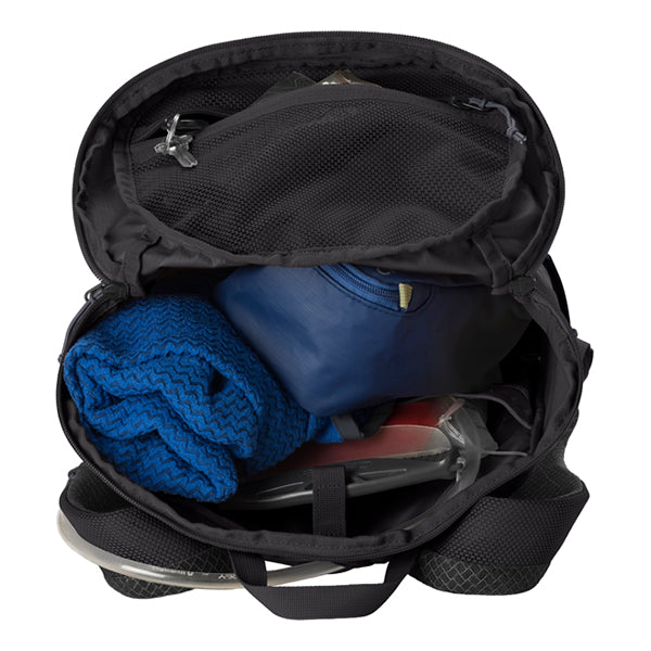 100%海洋リサイクル素材を採用し、地球にも優しい。通気性の良い背面パネルとホイッスル付きストラップで、一日中安全かつ快適にあなたの探検をサポートする多機能26Lバックパック。