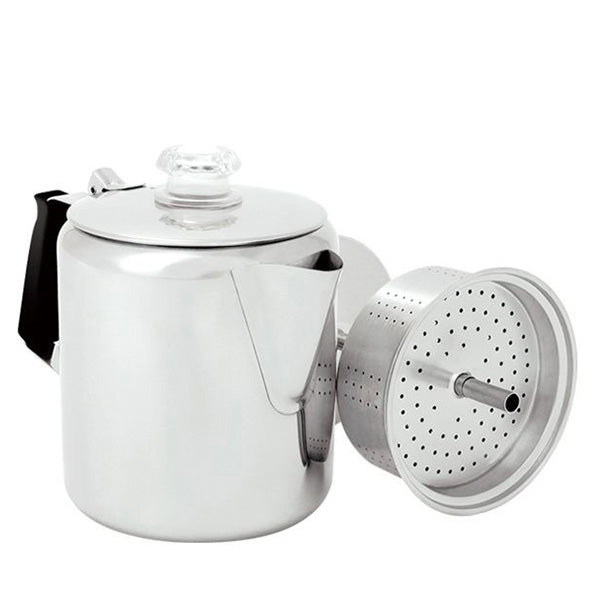 GSI ジーエスアイ ステンレス パーコレーターはアウトドア、家庭でも使える18/8ステンレスで作られた、美しいパーコレーターです。