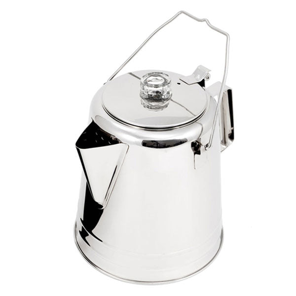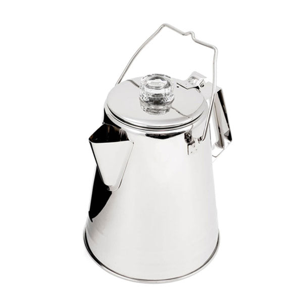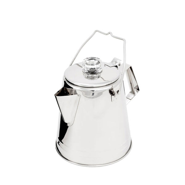 家庭やアウトドアで美味しいアメリカンなコーヒーが手軽に味わえます。持ち易いハンドルのデザインで、トライポッドなどに吊り下げてご利用いただくことも可能です。注ぎ口はコーヒーのしずくがたれないデザインとなっており、フタの取っ手はガラス製で、お好みのコーヒーの濃さへ調節していただけます。