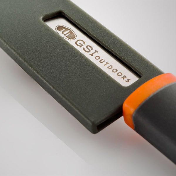 ソロでのキャンプや、少量の食材を調理するのにちょうどよいサイズです。鞘状の専用ケースが付属されており、キャンプや登山で安全に携帯することが可能です。またハンドルはゴム製で、水辺などの使用でもしっかりとグリップします。