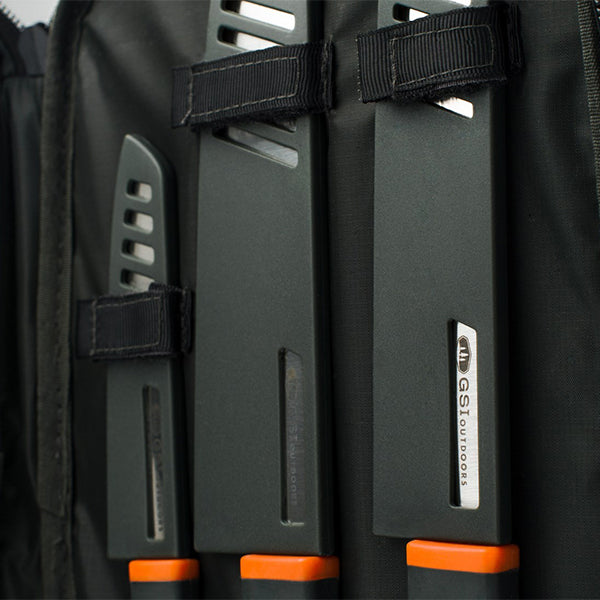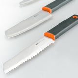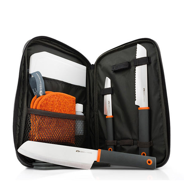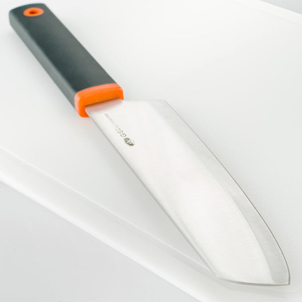 GSI ジーエスアイ SANTOKUナイフセットは日本の三徳包丁をベースにデザインされた非常に食材を切りやすいナイフと軽くて耐久性のあるまな板、洗剤を入れる小型ボトル、専用フキンがを専用ケースでまとめたセットです。