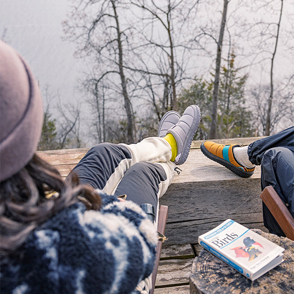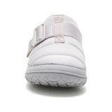 キャンプやタウンユースで気軽に履ける軽量なスリップオンサンダルはCHACOならではのストラップデザインも健在です。履き口は広くデザインされているので脱着しやすく、甲部分のストラップを、タイトにもルーズにも調整をして好みのフィット感が得られます。表面は撥水性のあるキルティングリップストップナイロンを使用。内側はソフトフリースの裏地が柔らかく、保温性を上げ、履き心地を良くしてくれます。Chaco(チャコ)独自のフットベッド、LUVSEATの快適な履き心地とグリップ性の高いアウトソールの組み合わせたランブルパフで、フィールドや街に踏み出しましょう。