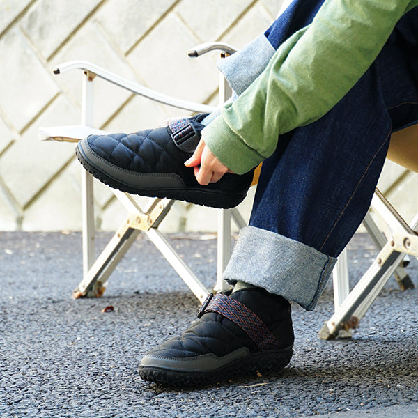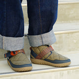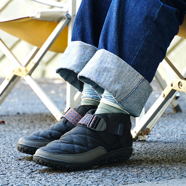 キャンプやタウンユースで気軽に履ける軽量なスリップオンシューズはCHACOならではのストラップデザインも健在です。履き口は広くデザインされているので脱着しやすく、甲部分のストラップを、タイトにもルーズにも調整をして好みのフィット感が得られます。表面は撥水性のあるキャンバス素材を使用。内側はソフトフリースの裏地が柔らかく、保温性を上げ、履き心地を良くしてくれます。キャンプファイヤーのそばでくつろぐときも、一日中足元を快適に保つデザインの1足です。Chaco(チャコ)独自のフットベッド、LUVSEATの快適な履き心地とグリップ性の高いアウトソールの組み合わせたランブル ラゲットキャンバスで、フィールドや街に踏み出しましょう。