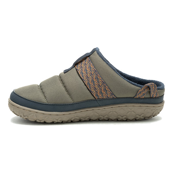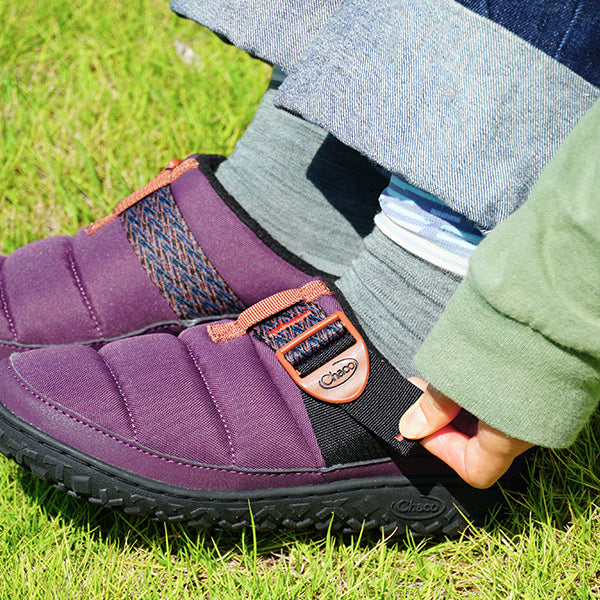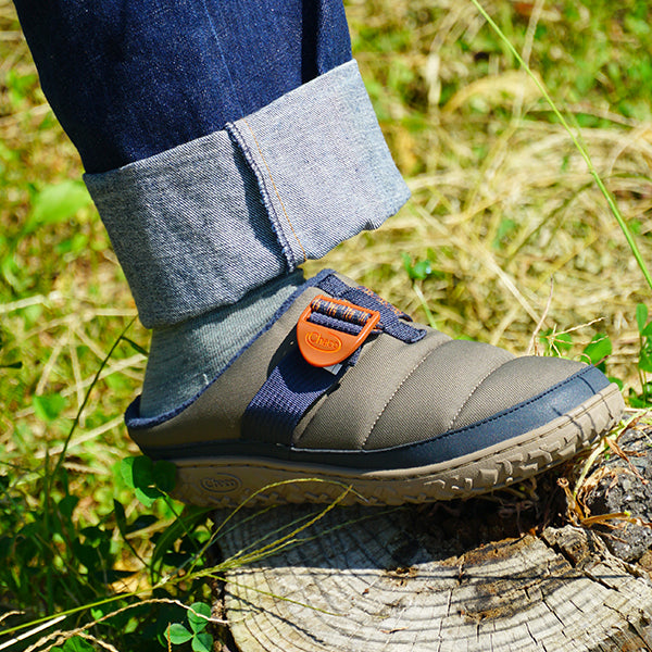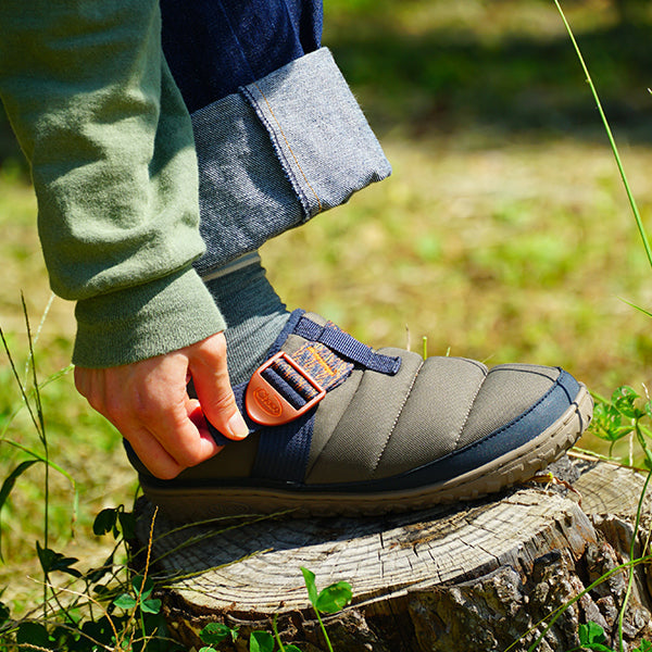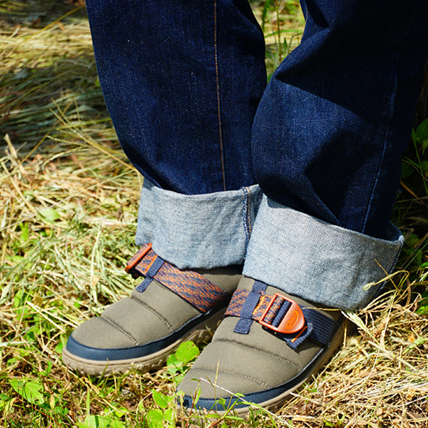 キャンプやタウンユースで気軽に履ける軽量なスリップオンサンダルはCHACOならではのストラップデザインも健在です。履き口は広くデザインされているので脱着しやすく、甲部分のストラップを、タイトにもルーズにも調整をして好みのフィット感が得られます。表面は撥水性のあるキャンバス素材を使用。内側はソフトフリースの裏地が柔らかく、保温性を上げ、履き心地を良くしてくれます。キャンプファイヤーのそばでくつろぐときも、一日中足元を快適に保つデザインの1足です。Chaco(チャコ)独自のフットベッド、LUVSEATの快適な履き心地とグリップ性の高いアウトソールの組み合わせたランブル ラゲットキャンバスで、フィールドや街に踏み出しましょう。