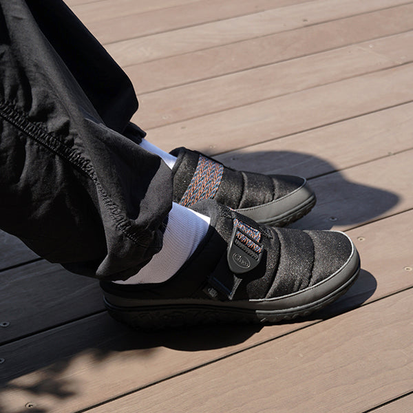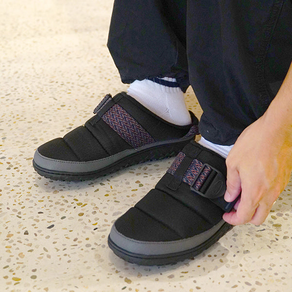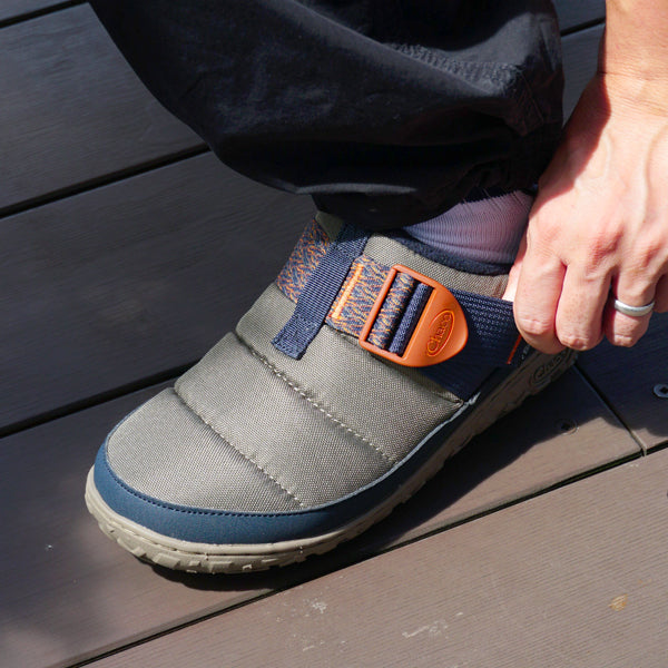 キャンプやタウンユースで気軽に履ける軽量なスリップオンサンダルはCHACOならではのストラップデザインも健在です。履き口は広くデザインされているので脱着しやすく、甲部分のストラップを、タイトにもルーズにも調整をして好みのフィット感が得られます。表面は撥水性のあるキャンバス素材を使用。内側はソフトフリースの裏地が柔らかく、保温性を上げ、履き心地を良くしてくれます。キャンプファイヤーのそばでくつろぐときも、一日中足元を快適に保つデザインの1足です。Chaco(チャコ)独自のフットベッド、LUVSEATの快適な履き心地とグリップ性の高いアウトソールの組み合わせたランブル ラゲットキャンバスで、フィールドや街に踏み出しましょう。