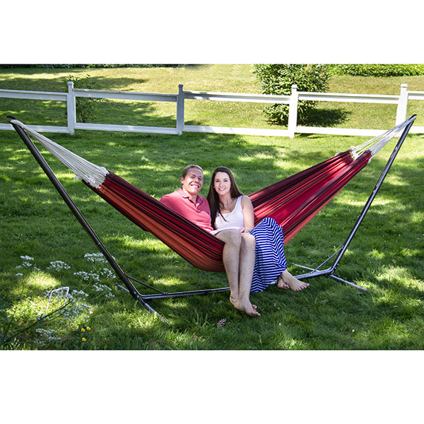 Byer of Maine セアラーハンモックスタンドは、スチール製の折りたたみ式ハンモックスタンドです。ハンモックのサイズに合わせて幅が約314~378cmまで調整可能です。両サイドにハンモックを引っかけるだけのシンプルな構造で、簡単に組み立て可能です。
