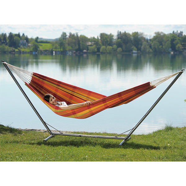 安定感があるスタンドなので、自宅の庭やウッドデッキ、別荘の庭など、様々なシーンでハンモックを楽しんでいただけます。ハンモックならではの浮遊感で、日頃の疲れを癒してみてはいかがですか。BYER社の各種ハンモックに使用可能です。