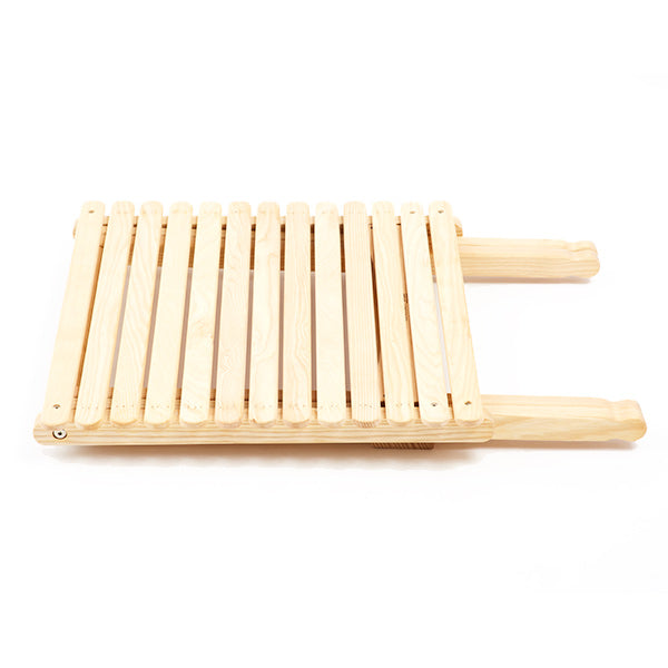 脚を折り畳むと全体がフラットになり、持ち運び、収納に便利で車に入れておけばいつでも使えます。BYER社の椅子やコットのサイドテーブルとしても丁度いい高さです。