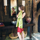 付属の収納袋に入れると非常にコンパクトになるので、旅行やキャンプ等に最適です。タオルの重量の約4倍の水分を高速吸収しますが、絞るとほぼ乾いた状態になる為素早く、また繰り返し使えます。お風呂上がりに全身拭くのなら、男女問わずMサイズが人気です。また、体に巻いて使いたい場合はLサイズ以上がオススメです。