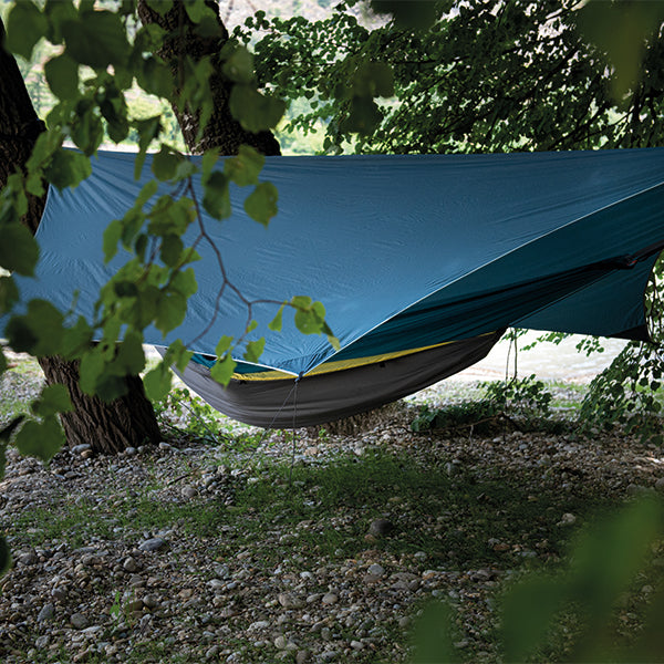 上部と足の端にあるドラフトチューブと高度に調整可能なサスペンションシステムは、ハンモックとアンダーキルトの間にデットエアーをしっかり溜めて暖かさを提供します。下から来る冷えを遮断し、温まった空気を逃がさないハンモックアンダーキルトとCOCOONのハンモックは完璧な組み合わせです。中綿はロフト圧縮性、熱効率のバランスに優れた100%リサイクル高断熱素材Pinneco Mantleを採用しています。
