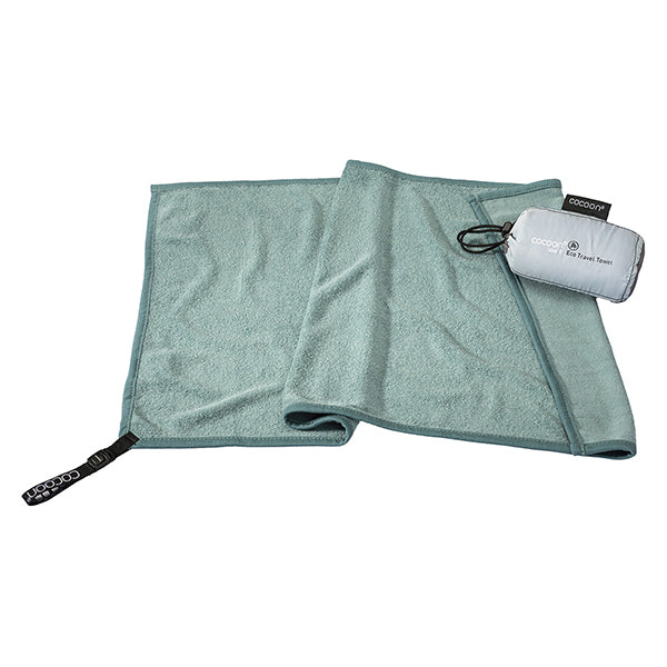 スタッフサックは、100%生分解性のリサイクルナイロン100%素材を使用しています。COCOON エコトラベルタオルは、マイクロファイバータオルと同じ4つのサイズ展開と美しい2色をご用意しました。