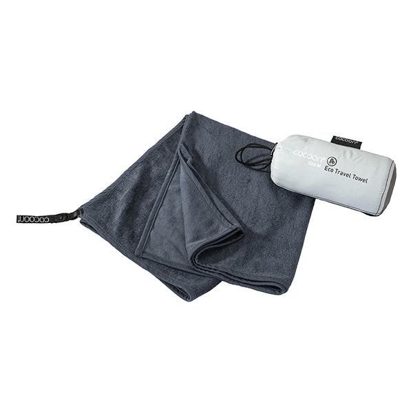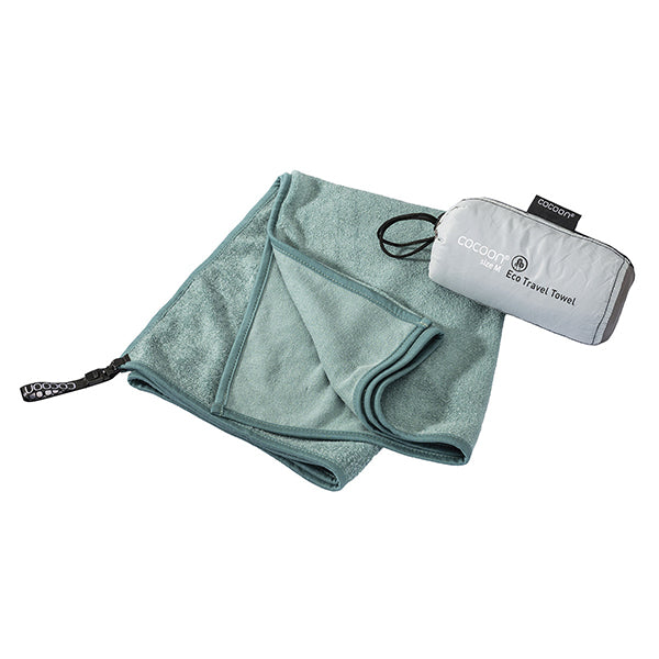 スタッフサックは、100%生分解性のリサイクルナイロン100%素材を使用しています。COCOON エコトラベルタオルは、マイクロファイバータオルと同じ4つのサイズ展開と美しい2色をご用意しました。
