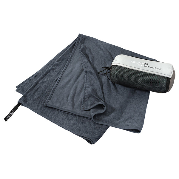 スタッフサックは、100%生分解性のリサイクルナイロン100%素材を使用しています。COCOON エコトラベルタオルは、マイクロファイバータオルと同じ4つのサイズ展開と美しい2色をご用意しました。