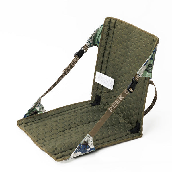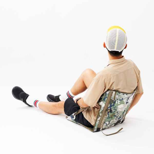 表面生地はよりしなやかな新素材の採用で折りたたみ易く、座面のフォーム素材のパターンも新開発され座り心地も向上しています。キャンプや登山、ビーチなどでオールシーズン使用でき、椅子がない場所やピクニックでも後ろに寄りかかれるので快適に過ごす事が出来ます。雑誌等のメディア掲載が多く好評を頂いており、使いやすさで話題の折りたたみチェアです。角度はストラップで調節でき、ストラップを外して広げればマットとしても使用できます。