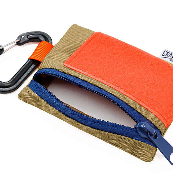 タクティカルライクな面テープをクレイジークリークらしくポップでカラフルにしたパスケースは、カラフルな面テープ部分にお好きなワッペンをつけて自分だけのオリジナルなパスケースにカスタマイズ可能。通勤・通学のパスケースとしてだけでなく、ちょっとしたお財布としても活躍。小銭や折りたたんだお札、カードなども収納できるので、これ一つで身軽にお出かけできます。バッグやベルトループなどにサッと取り付けられるカラビナ付きで、必要な時にすぐにアクセス可能。手ぶら感覚で動きたい時や、旅行時のサブウォレットとしても便利です。オールドスタイルな雰囲気のファブリック、600デニールポリエステルのマットな糸でデザインしたクラシックなテイストを、日常に取り入れましょう!