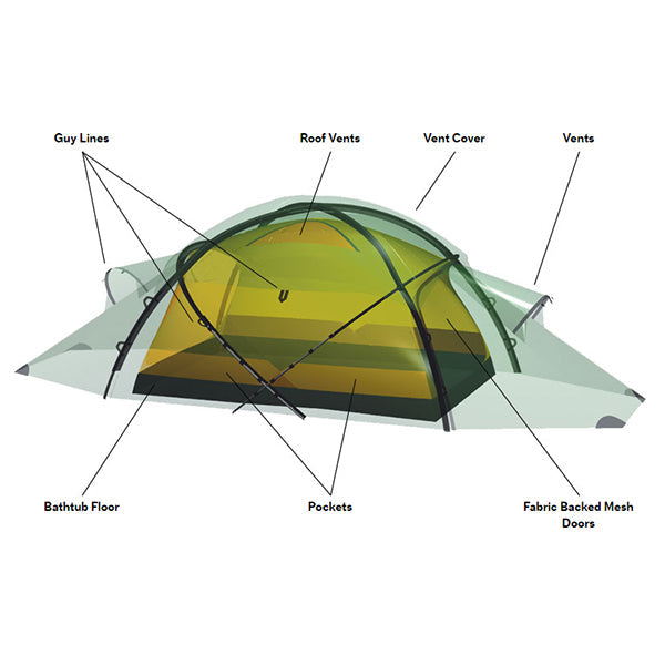 ・自立構造と簡単に設営ができ、広々とした居住空間。過酷な旅からのんびりとしたいキャンプまで、選択幅のある素晴らしいテントです。過酷な南極遠征チームまでもが使用するテントですので安心してご利用いただけます。