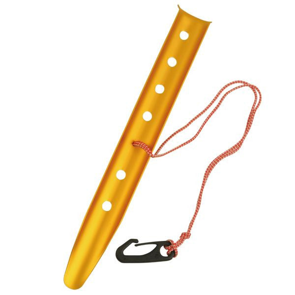 ・いわゆるスノーペグの大半が柔らかく、雪の中で曲がってしまう事に気づき、ヒルバーグ社は自分たちのスノーペグを開発しました。 非常にハードな使い方(例えばアイゼン、シャベル、その他の冬山ギアとの接触や硬い雪)にも耐えられるよう造られています。