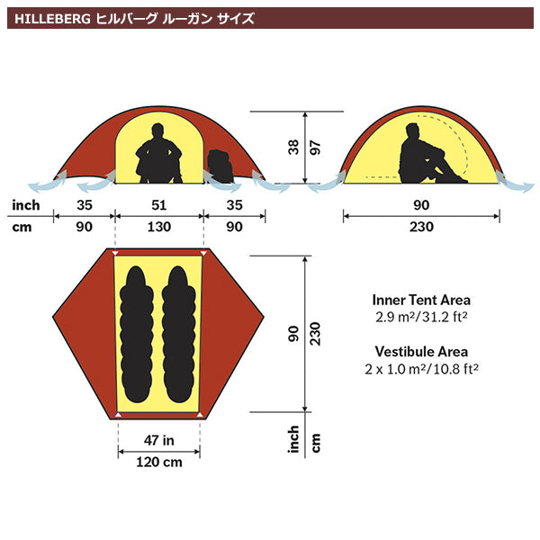 HILLEBERG ヒルバーグ ルーガン2.0 はオールシーズンテントのアラックの安定性と広々とした居住空間を元にデザインされた自立型のテントです。