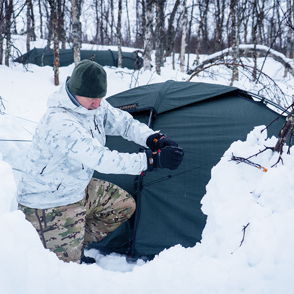 自立式構造と一体型のベランダを備え、過酷な状況下でも設営が可能で、複数のポール交差ポイントが最も過酷な天候にも耐えられる強度を提供します。内部は驚くほど広々としており、驚くほど軽量です。頑丈なSoulo BL Tacticalの連結式インナーテントとアウターテントは、設営が単一のステップで完了するだけでなく、あらゆる条件下で迅速かつ簡単に行え、一人でも暗闇の中でも可能です。自立式構造はあらゆるミッションに適しています。また、光を遮断するアウターテント生地、緑のテントには黒のガイライン、反射材を排除した設計により、優れたステルス性を実現しています。Souloは、スカンジナビア北部の先住民の言語であるサミで「島」を意味します。