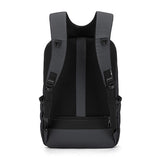 背面側にはキャリーバッグのハンドルに通せるスレッドと隠しポケットがあります。また、全てがジッパーがロックできるものとなっているので盗難対策も充実しています。内側には15インチのラップトップが入るスリーブとタブレットスリーブが付いています。
