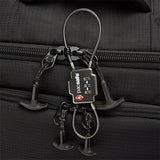 スチールケーブル2本を含む頑丈な素材で作られているので、バッグを移動する際にジッププラーをロックして荷物を固定したり、バッグ自体をポールや手すりなどの固定物に固定したりすることもできます。