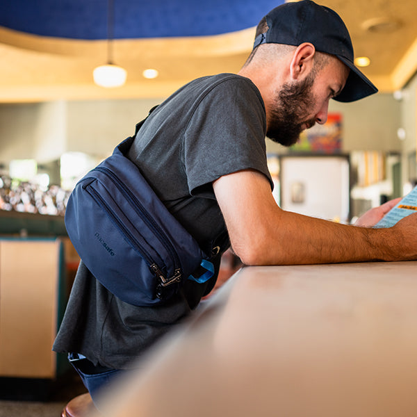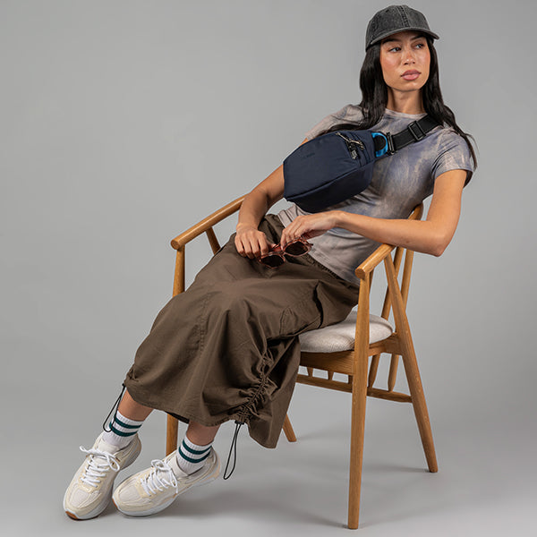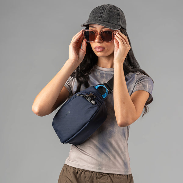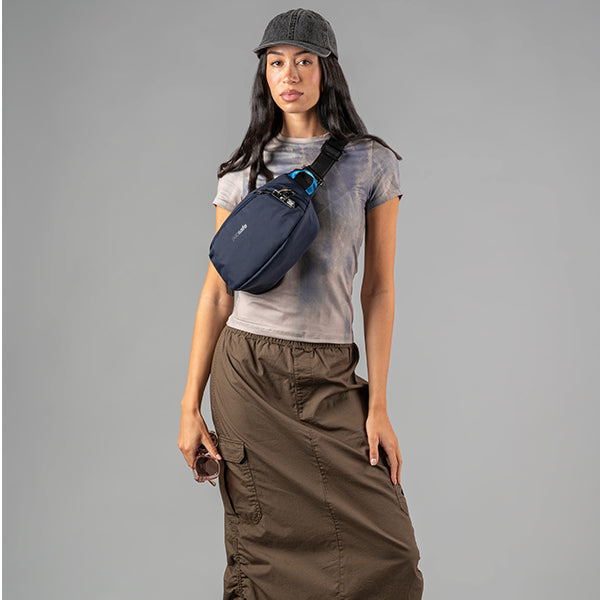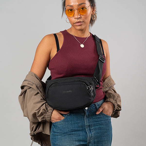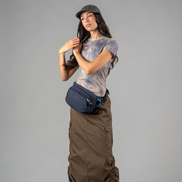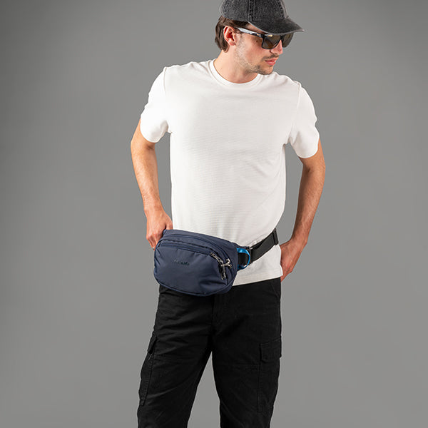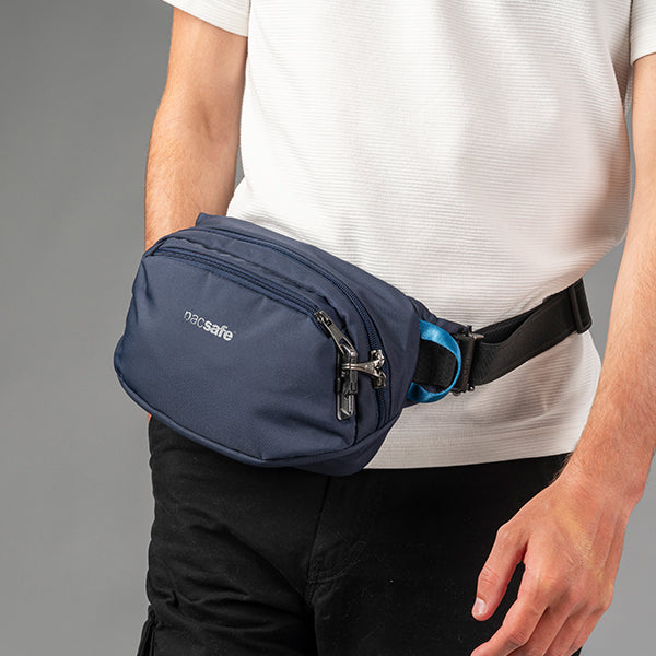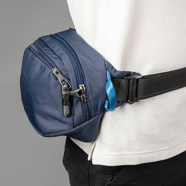 pacsafe パックセーフ V ヒップパック はパスポート、鍵、財布さらには7インチのタブレットなどポケットに入れているものをすべて最適に収納でき、ペットボトルも入るサイズのヒップバッグです。
