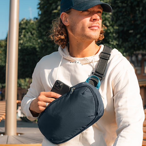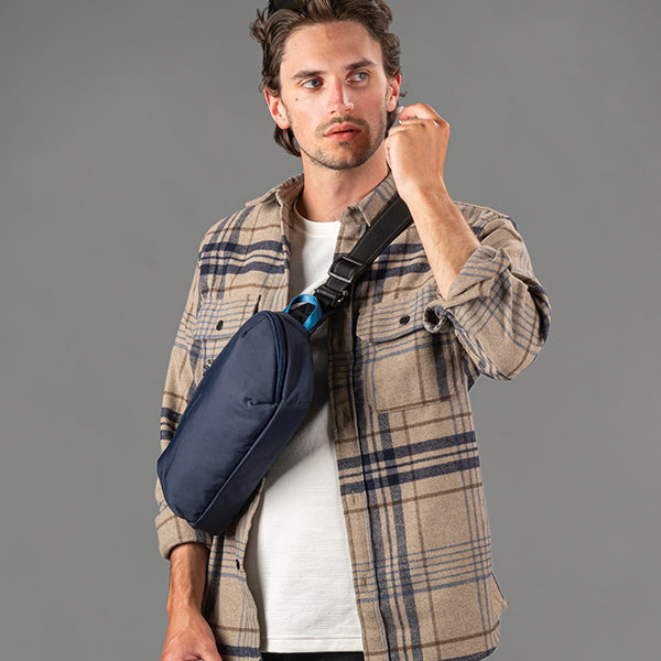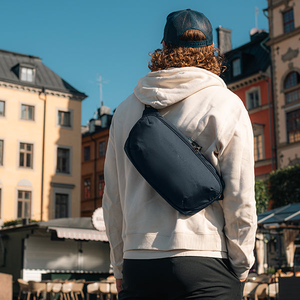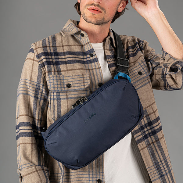 pacsafe パックセーフ V アーバンスリングはカットレジスタンスエキソメシュライニング、ロック可能なジッパー、RFIDブロックポケット、カットレジスタンスショルダーストラップなど、Pacsafeの代表的な盗難防止機能が搭載されたワンショルダーバッグです。