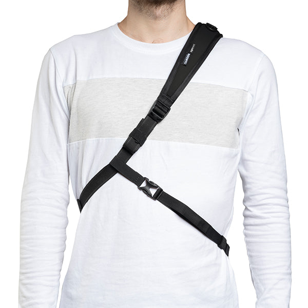 ショルダーストラップとボディストラップを接続し3点留めすることで、移動中のバッグの動きを最小限に抑えることができます。両サイドにボトルポケットが備わります。アウトドアやサイクリング旅行などで活躍します。11インチまでのタブレットが収納可能です。