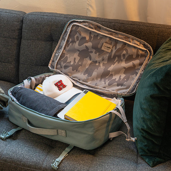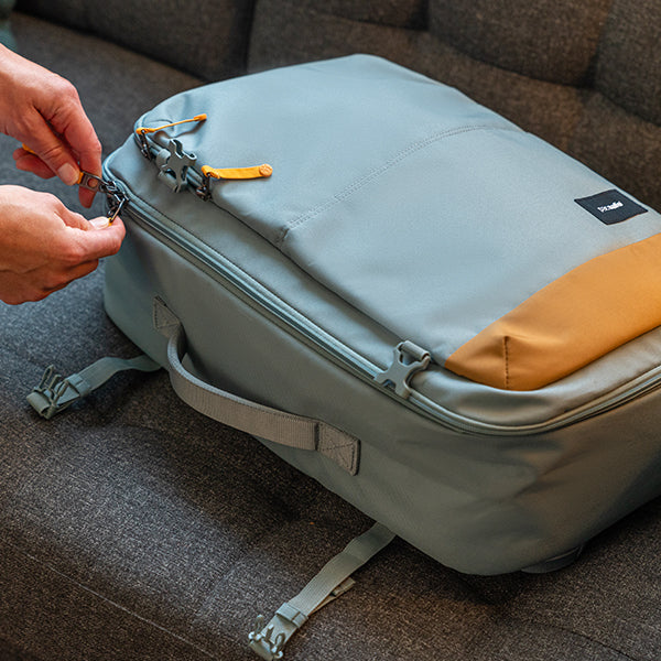 pacsafe パックセーフ GOキャリーオンバックパック 34L は機内持ち込みのできる、盗難防止機能の高いバックパックです。