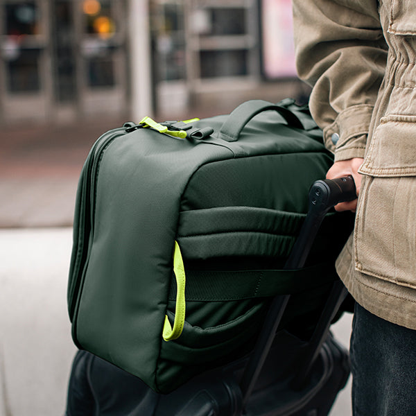 ちょっとした旅行にも日常使いにも適したサイズで、フロントポケットにはホテルのバウチャーや頻繁に取り出す必需品を収納しましょう。バックパックは、スーツケースのように開き、パッキングも簡単です。持ちやすいクッションの付いたサイドハンドルは、背負えない場所でも手持ちしやすいデザインです。