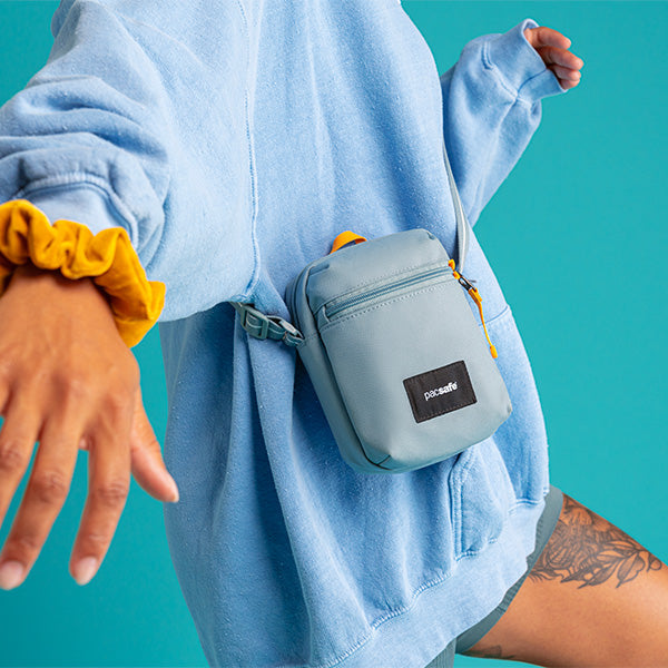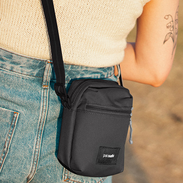 pacsafe パックセーフ GO マイクロ クロスボディ は必要なものだけを持ってハンズフリーで過ごしたい時に最適なクロスボディバッグです。