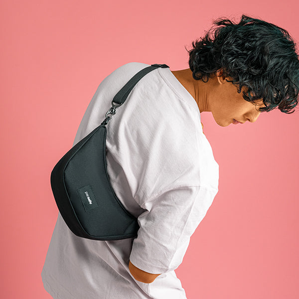 pacsafe パックセーフ GO ルナークロスボディ はスリングパックとしても使えるように設計されたクロスボディバッグです。ストラップを調整することでお好みのスタイルでお使いいただけます。pacsafe 独自の使いやすい防犯機能を備えており、貴重品を保護することができます。