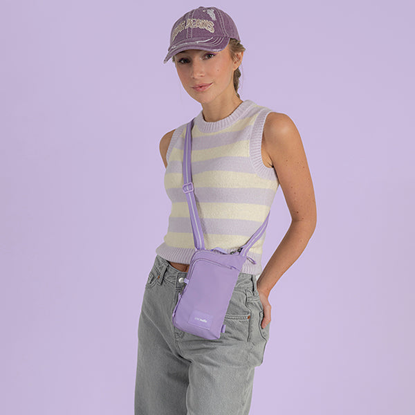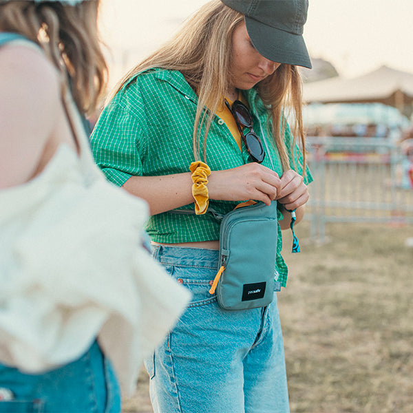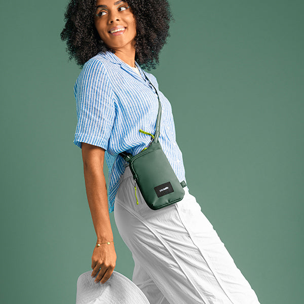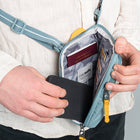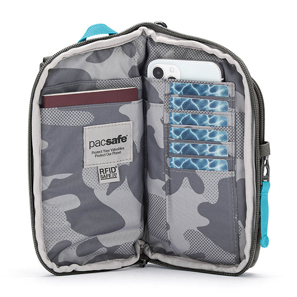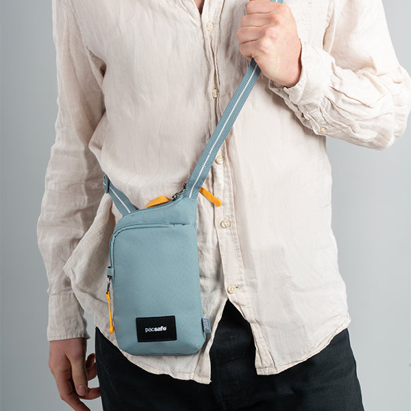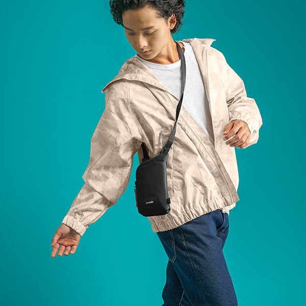 pacsafe パックセーフ GO テッククロスボディ はパスポート、チケット、クレジットカード、現金などの貴重品を安心して持ち運べる斜め掛けバッグです。フロントコンパートメントは、携帯電話やその他の必需品を入れるのに最適です。ジャケットの下にも隠せます。大切な持ち物を体の近くに置いて、ストレスフリーな旅を。