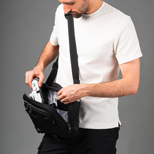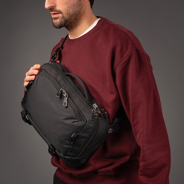 pacsafe パックセーフ EXP12 スリングクロスボディ はクロスボディバッグまたはスリングパックとして2通りの着用方法が可能な盗難防止機能付きのボディバッグです。