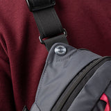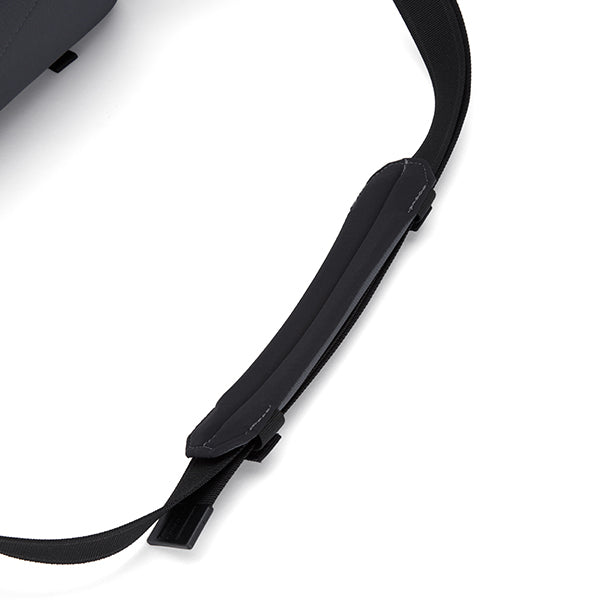 ショルダーストラップの付け根にはローテーションバックルが搭載されているので、体や持ち運びスタイルにフィットして使うことができます。
