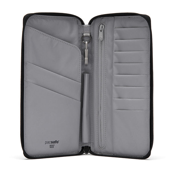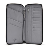 pacsafe パックセーフ RFIDセーフ トラベルウォレット はパスポートやカード、現金をすべてひとつにまとめて収納できる、安全性と利便性を兼ね備えたRFIDセーフ機能がついた縦長のトラベルウォレットです。