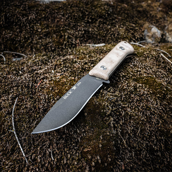 BUCK KNIVES バックナイフ #104 キャンプナイフ ブラックは心の底よりアウトドアが好きな人に向けて作られた、ドロップポイント、フルタングのキャンプナイフです。